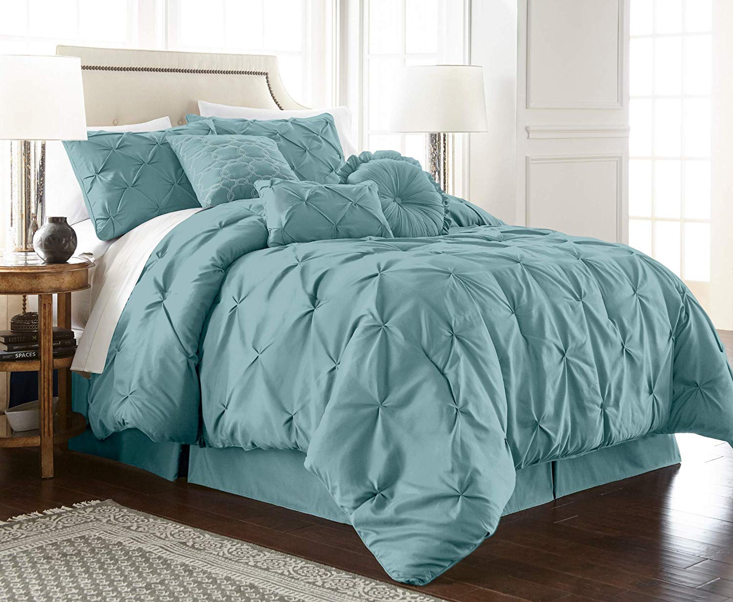 GroopDealz | 8-Piece Oversized & Overfilled Pintuck ... from images.groopdealz.com Swift home floral pintuck comforter set. This mint solid pintuck comforter set includes; 1 comforter and coordinating pintuck sham(s). Give your space a chic new look with this swift home pintuck comforter set. One(1) oversized comforter, one(1) bedskirt, two(2) euro shams, two(2) standard shams, one(1) decorative pillow and one(1) decorative square. 20 w x 26 l standard pillow sham. White pintuck comforter set queen, all season pinch pleat comforter with 2 pillowcases, luxury soft microfiber beddin duvet insert ( queen size, 3 pieces). These comforter sets made from soft microfiber include printed sheets and feature a pintuck design which can complement many bedroom decors.